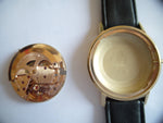 Dial: with hand-rivetted gold hour markers and "stick" hands.
