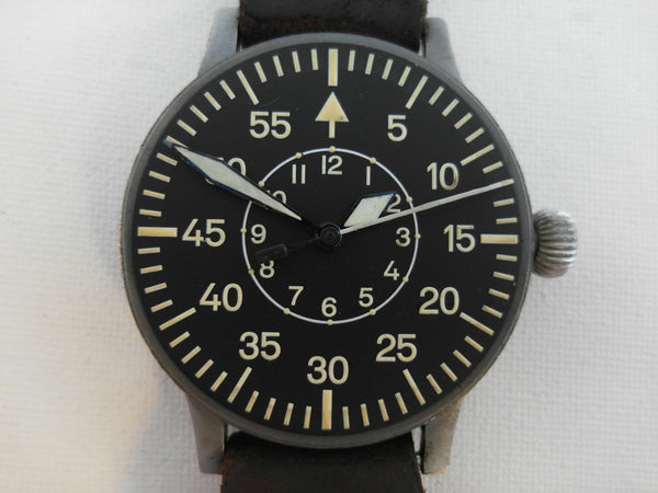 The German Ministry of Aviation sought a commensurate time piece for its bomber navigators, the responsibility to produce accurate and usable timepieces with which to control the war was given to five manufacturers: A.Lange & Sohne, IWC, Wempe, Stowa and Laco.