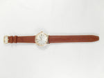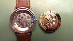 Dial: with hand-rivetted gold hour markers and "stick" hands.